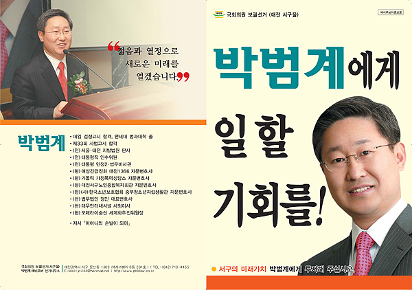 대전 서구을 국회의원 보궐선거 예비후보 박범계 변호사는 3월 19일 월요일 오전 9시 선거구내 9,154가구 세대주에게 4페이지 분량의 예비후보 홍보물을 발송했다.