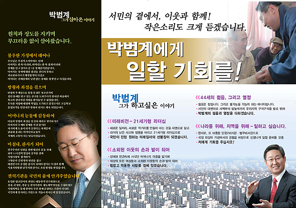 이번 예비후보 홍보물에는 박변호사의 어려웠던 성장과정과 방황 그리고 이를 극복하고 법관으로, 대통령 비서관으로서 그가 했던 역할을 담았다.