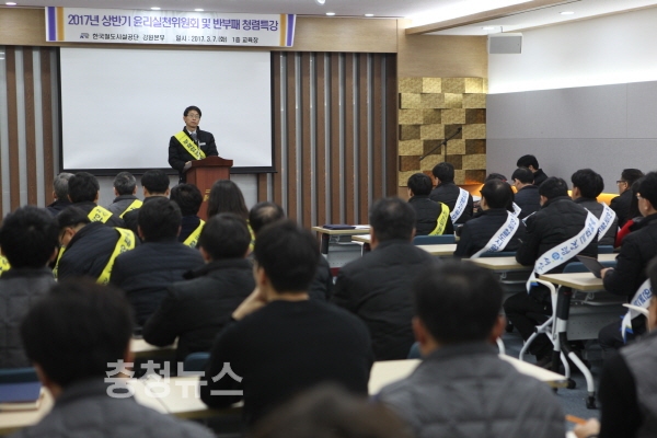 한국철도시설공단 강원본부(본부장 노병국)가 윤리경영 실천을 위한 전사적인 공감대를 형성하기 위하여 7일 ‘2017년 상반기 윤리경영위원회’를 개최한다고 밝혔다.