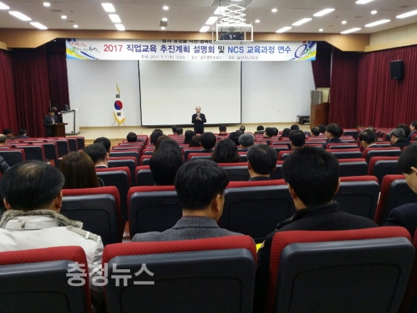 도교육청은 충남 도내 특성화고·마이스터고 교장, 직업부장, 취업부장교사와 교육청 담당자 등 120여명이 참석한 가운데 7일 공주생명과학고에서 ‘행복한 학교 학생 중심 충남교육’과 ‘꿈과 열정을 지닌 행복한 직업인 육성’을 위해 이 같은 내용을 담은 2017년 직업교육 추진계획 설명회를 개최했다.