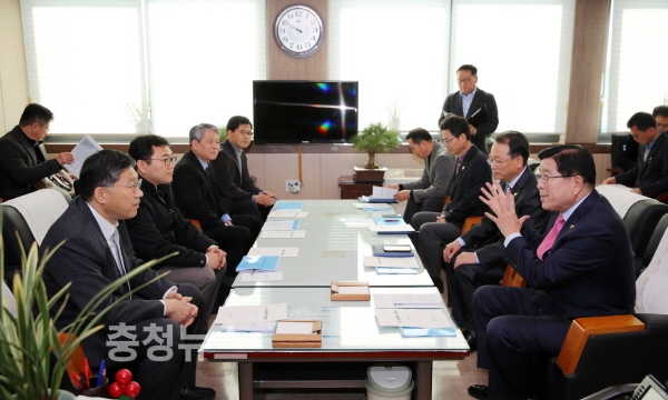 군은 지난 7일 군수실에서 한상기 군수와 군 관계자, 충남연구원 관계자 등 12명이 참석한 가운데 대선공약과제의 내실 있는 발굴을 위한 ‘충남연구원 정책간담회’를 갖고 군과 충남연구원 태안군 정책협력단 간 협력방안을 논의했다고 밝혔다.