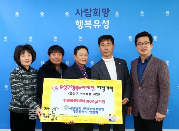 백미는 유성구 행복누리재단을 통해 관내 어려운 이웃들에게 전달될 예정이다.