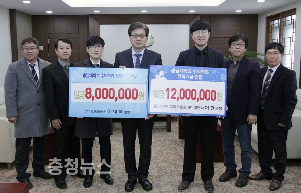 충남대 수의학과 출신의 동물병원장 2명이 충남대에 장학기금을 기부했다.