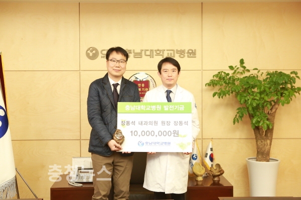 충남대학교병원(원장 송민호)은 장동석 내과의원의 장동석 원장이 충남대학교병원 발전기금(신장내과 기금)으로 일천만원을 기부했다고 밝혔다.