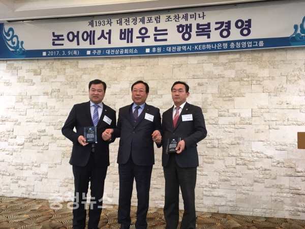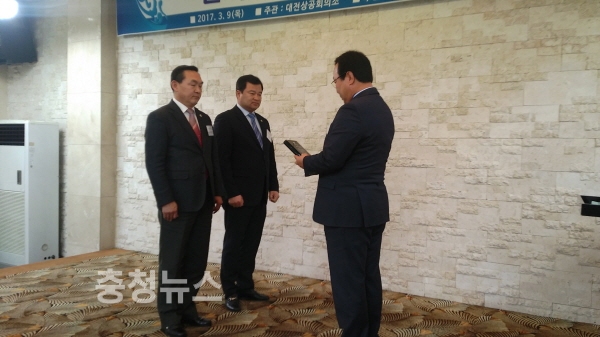 대전광시의회 박희진 의원(대덕구1, 자유한국당)과 송대윤 의원(유성구1, 더불어민주당)은 지난 9일 대전상공회의소(회장 박희원)로 부터 대전시 중소기업제품 구매촉진 및 판로지원 활성화 공로로 감사패를 받았다.
