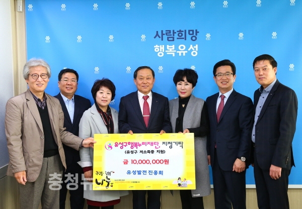 대전 유성구(구청장 허태정)는 10일 유성발전진흥회로부터 저소득층 지원을 위한 1000만원의 성금을 전달 받았다고 밝혔다.