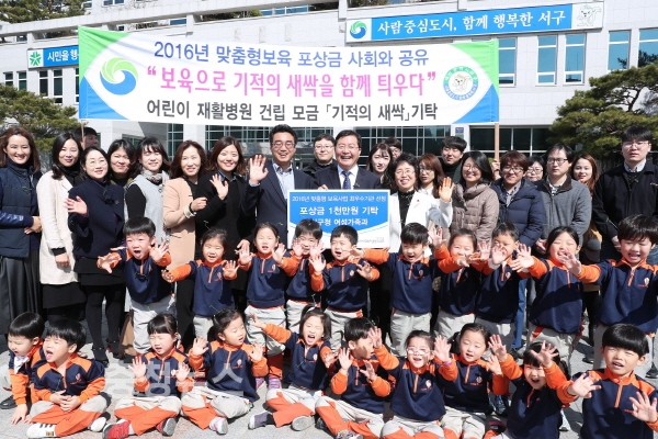 장종태 서구청장은 “보육 관계자들이 다 함께 노력한 성과를 뜻있는 곳에 쓰게 되어 기쁘다.”며, “일과 가정의 양립을 지원하고 적정시간에 아이를 맡길 수 있는 질 높은 보육환경 조성에 최선을 다하겠다.”고 밝혔다.