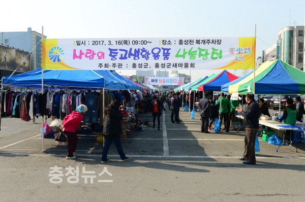 충남 홍성군은 16일 오전 9시부터 홍성천 복개주차장에서 환경을 살리고 이웃사랑을 실천하는 봄맞이 중고 생활용품 나눔장터를 개최했다.