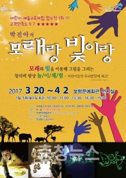 충남 보령시는 오는 20일부터 4월 2일까지 보령문화예술회관 전시실에서 어린이 예술교육체험, 박진아의‘모래랑 빛이랑’기획전시를 개최, 따뜻한 봄날을 맞아 자녀와 부모가 함께 예술을 체험해 볼 수 있는 특별한 기회를 선사한다.