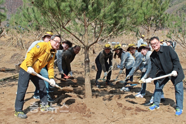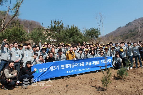 이날 행사에는 현대차그룹 직원 및 교육생, 진흥원 직원 등 100여 명이 참석해 소나무 500주를 심었다.