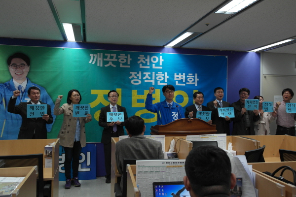 정 후보는 20일 오전 천안시청 브리핑실에서 기자회견을 열고 천안시바선거구 출마를 결심했다고 밝혔다.