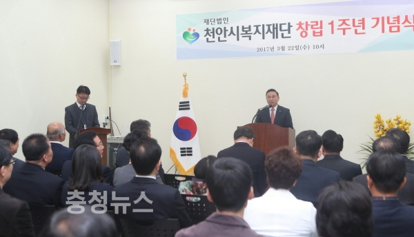 충남 천안시복지재단(이사장 문은수)은 22일 복지재단 대회의실에서 개관 1주년을 맞아 기념식을 가졌다.
