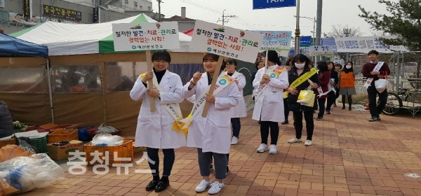 이날 행사는 보건소 직원들과 공주대학교 및 혜전대학교 학생 등 30여 명이 참여한 가운데 ‘결핵없는 예산! 건강한 예산!’이라는 슬로건 아래 결핵예방의 중요성을 알리기 위해 마련됐다.