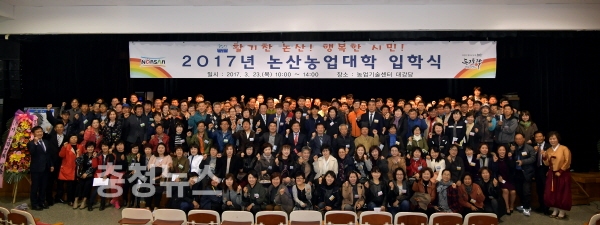 충남 논산시 황명선 시장은 23일 논산시농업기술센터 대강당에서 입학생을 비롯해 내빈, 가족 등 200여명이 참석한 가운데 논산농업대학 입학식을 개최했다.