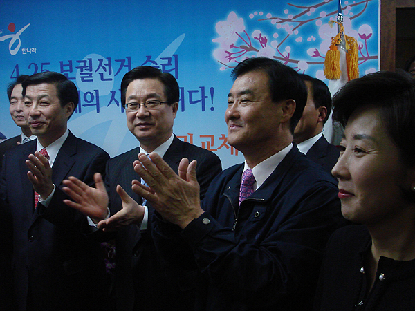 이어 강창희 최고위원은 "여기 있는 조직으로 보선에서승리를 못한다면 어떻게 정권을 잡을 수 있겠느냐 며 한나라당 후보를 뽑으면 정권교체를 할 수 있고 뽑지 못하면 한나라당은 영원히 정권을 잡지 못할 것'이라면서 당원들의 적극적인 선거운동을 요구 했다.