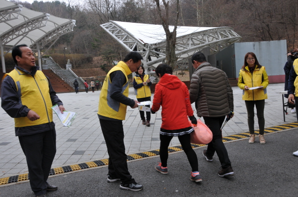이날 행사에 참여한 의원 및 사무국 직원들은 야외음악당 과 청년의 광장에서 등산 나온 시민들에게 산불예방 캠페인 전단지 5천장을 나눠 주며 산불예방을 위해 총력을 다 했다.