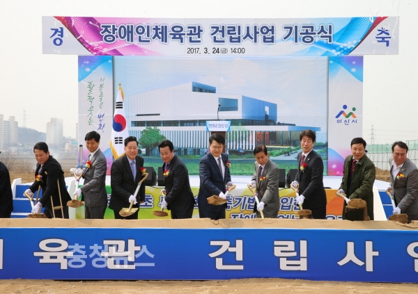 장애인체육관은 지난 2014년 국민체육진흥기금 생활체육시설 공모사업에 선정돼 총 120억원의 예산을 투입해 조성되며, 아산시 실옥동 368-32번지 일원에 지상 3층, 연면적 4,176㎡ 규모로 2018년 상반기 완공될 예정이다.