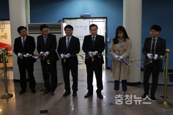 지난 28일 오후 상명대학교 천안캠퍼스 학생회관에서 열린 SK청년비상 Creative Space 개소식에는 상명대 양용준 부총장, 강시우 창업진흥원장 등이 참석하였다. 이들은 재학생들의 다양한 아이디어를 창업으로 연결하는 본 공간의 오픈을 축하했다.