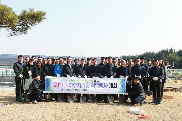 이번 식목행사에는 공단 임직원 50여명이 참여하여 온실가스 저감 및 악취 예방을 위해 하수처리장 내부에 반송 등 수목 3,090주와 꽃묘 1,000본을 한밭수목원에서 무상분양 받아 식재했다.