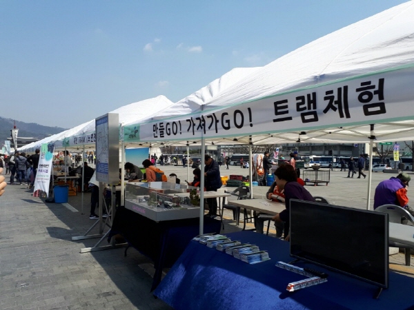 홍보부스에서는 특히, 트램 종이모형 접기 체험행사가 전국에서 모인 방문객들의 눈길을 끌었다.