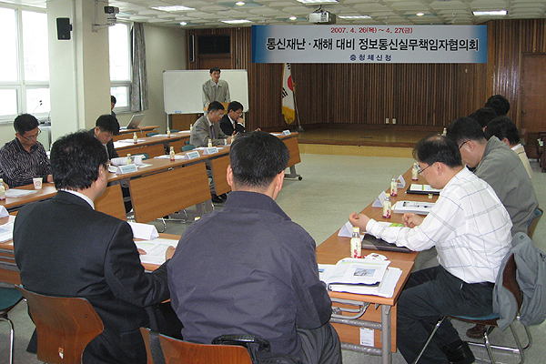 충청체신청(청장 이계순)은 하절기 태풍․집중호우 등 자연재해로 인한 통신 서비스의 불통사태에 대비하여 4월 26일부터 27일까지 기간통신사업자, 자가통신설비 설치자 및 유관기관 등 30여명이 참석한 가운데 충청지역 정보통신실무 책임자 협의회를 개최하였다.