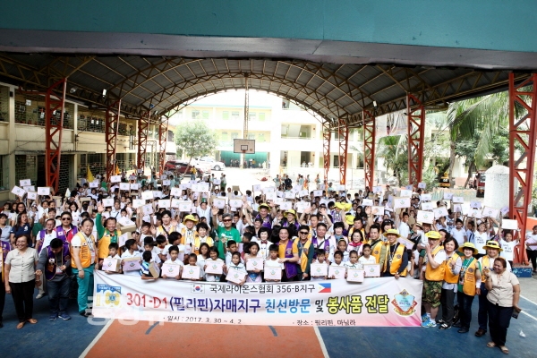 국제라이온스협회 356-B(대전)지구 송경자 총재를 비롯한 35명의 봉사단은 지난 3월 30일부터 4월 2일까지 3박 4일의 일정으로 자매지구인 301-D1(필리핀)지구 친선방문 및 봉사활동과 선교봉사단체인 구손평화봉사단 추천 수상가옥과 초등학교에 대한 뜻깊은 나눔봉사를 펼쳤다.