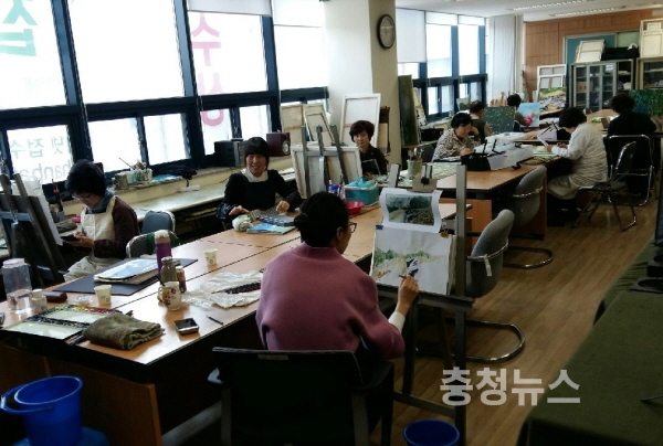 회화강좌는 기초소묘부터 수채화, 유화, 민화 등 과목이 개설되어 있다.