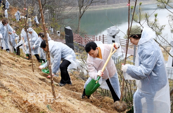 이번 나무심기 행사는 뿌리공원 성씨조형물 추가 조성에 따라 나지로 노출된 지역의 경관개선을 위해 직원 200여 명이 참여한 가운데 산수유와 산딸나무 등 2종 700본을 식재했다.
