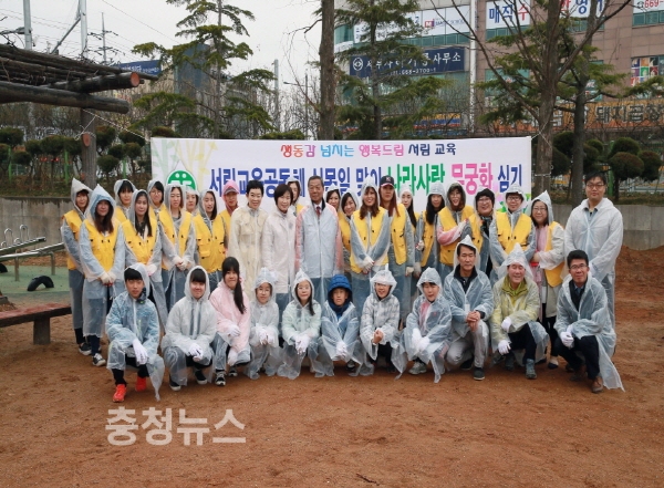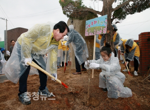 또한 일선 학교의 적극적인 참여 유도를 위해 김지철 교육감이 5일 서산 서림초에 방문해 학생들과 함께 무궁화 나무 100그루를 심고 무궁화 분재용 화분 90여개를 만들었으며, 본청에도 간부들이 직접 참여해 무궁화 나무 70그루를 심어 무궁화 동산을 조성했다.