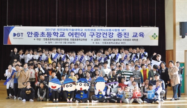 대전과학기술대학교 치위생과(학과장 양진영)는 지난 3월 30일 충남 태안에 위치한 안중초등학교 병설유치원 및 안중초등학교에서 전교생을 대상으로 지역사회 봉사활동 MT를 시행하였다.