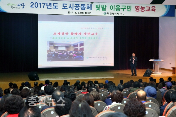 대전 서구(구청장 장종태)는 6일 구청 대강당에서 도심 속 텃밭 참여자 240여명을 대상으로 영농교육을 했다고 밝혔다.