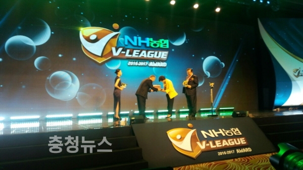 천안시는 6일 서울 양재동 더케이호텔에서 개최된 ‘NH농협 2016~2017 V-리그 시상식’에서 한국배구연맹 회장으로부터 감사패를 전달 받았다고 밝혔다.