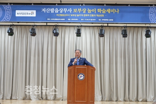 부여군(군수 이용우)은 지난 7일 부여문화원 소공연장에서 사단법인 저산팔읍상무사보존회(대표 이정구)가 주최하여 ‘보부상놀이의 문화적 전통과 계승 방향’이라는 주제로 학술세미나를 개최했다.