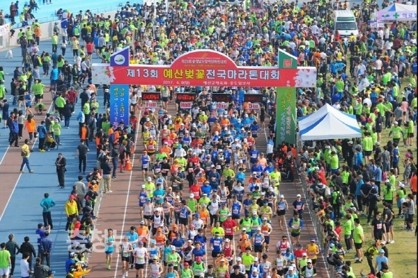 화사한 벚꽃길을 따라 펼쳐진 ‘제13회 예산벚꽃 전국마라톤대회’가 9일 예산종합운동장과 군 일원에서 성공적으로 개최됐다.