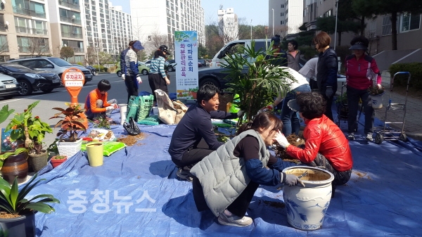 충남 계룡시 농업기술센터(소장 김석조)가 지난 3일부터 관내 11개 아파트 단지를 대상으로 실시 중인 봄철 ‘화분관리요령 교육’이 시민들로부터 큰 호응을 얻고 있다.