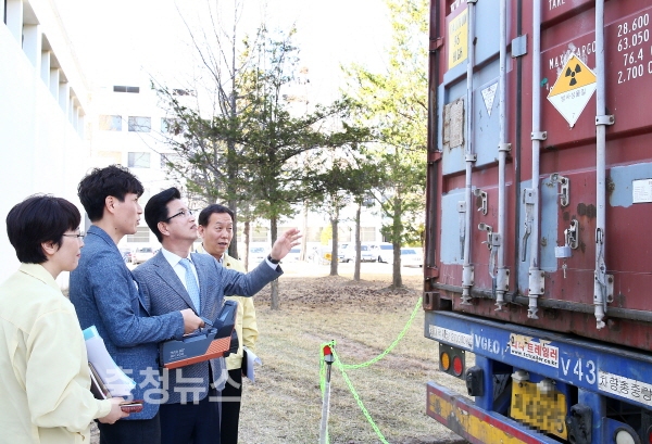 허태정 유성구청장은 10일 오후 한국원자력연구원에서 11일 새벽 반출된 중·저준위방사성폐기물 30드럼 운반검사에 참여해 방사성폐기물 운반차량 주변 방사선량 측정과 제반절차 이행점검 등 운반 중 주민에게 미칠 수 있는 영향을 직접 점검했다.
