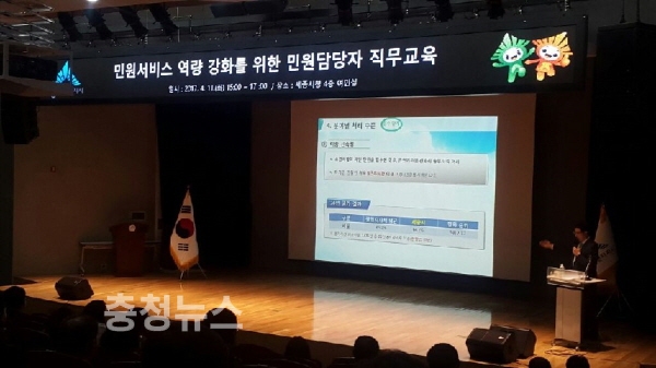 세종특별자치시는(시장 이춘희)가 11일 시청에서 민원, 인‧허가 담당 공무원 300여명을 대상으로 정혜영 국민권익위원회 과장을 초청해 ‘국민과 소통하는 감동민원 구현’이라는 주제로 교육을 실시했다.