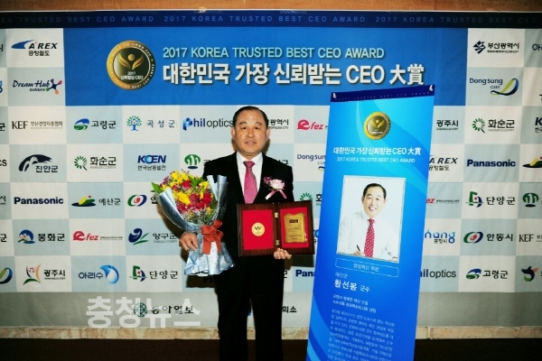 충남 황선봉 예산군수가 13일 롯데호텔서울에서 개최된 ‘2017 대한민국 가장 신뢰받는 CEO 대상 시상식’에서 행정혁신 부문 대상을 수상했다.