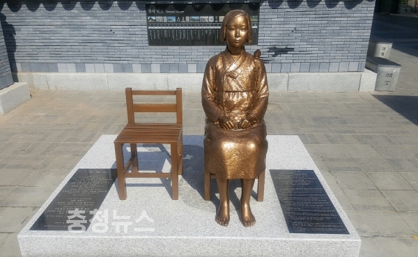충남 예산군은 13일 분수대광장에서 위안부 할머니들의 명예회복을 기원하는 평화의 소녀상 제막식을 개최했다고 밝혔다.