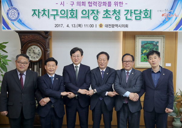 대전시의회(의장 김경훈)가 13일 시의회 의장실에서 5개 자치구의회 의장을 초청해 간담회를 개최했다.