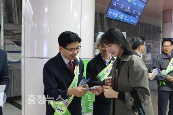 ‘안전캠페인’은 유성온천역 대합실과 역 주변 8개소에서 도시철도 이용 안전수칙이 적어진 안내문과 물티슈, 황사마스크를 나누어 주면서 안전이용을 당부했다.