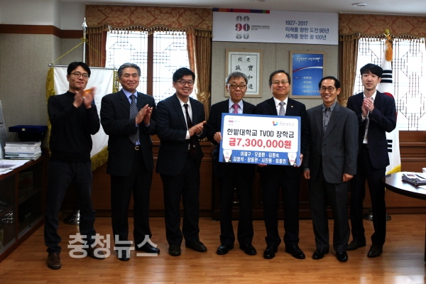 한밭대학교(총장 송하영)는 경영회계학과 교수들과 산학협력중점 교수들이 학생들의 창업위기를 극복하는데 지원하는 ‘TVOD 장학금’으로 써 달라며 대학발전기금을 학교에 전달했다고 밝혔다.