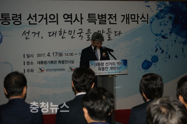 세종특별자치시선거관리위원회와 대통령기록관은 17일 대통령기록관 내 상설전시관(1층, 로비)에서 "대통령의 선거 역사 특별전, ‘선거' 대한민국을 만들다" 개막식을 개최했다.
