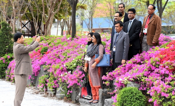 방글라데시에서 대전을 방문한 외국인들과 시민들은 아름다운 영산홍을 배경으로 연신 카메라와 스마트폰을 손에 쥐고 아름다운 봄날의 추억을 담기에 여념이 없다.