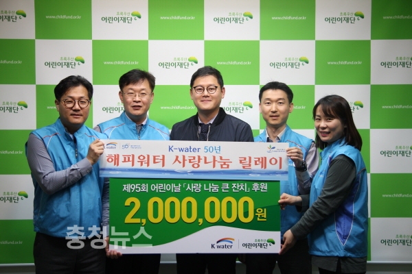 K-water 기획조정실 임직원은 행사에 참석하는 160여명의 아동들이 어린이날을 즐겁게 보낼 수 있도록 선물비를 전달했다.
