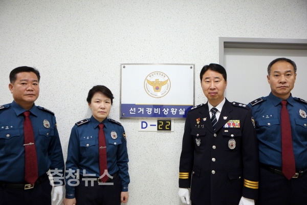 충남지방경찰청(청장 김재원)은 제19대 대통령 선거의 공식적인 선거운동이 시작됨에 따라 지난 17일부터 5월 9일 개표종료 시까지 충남지방경찰청과 도내 15개 全 경찰서에 “선거경비상황실”을 설치하고, 24시간 운영하는 등 본격적인 선거 경비체제에 돌입한다고 밝혔다.