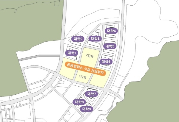 공동캠퍼스는 투자 효율성을 높이기 위해 총 2단계로 나누어 추진할 예정으로, 1단계 시설은 약 1480억 원을 투입하여 2020년까지 건립할 계획이다.