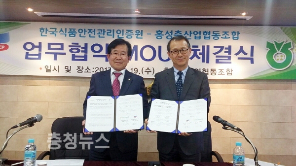 충남 홍성지역을 대표하는 ”홍성축산업협동조합“과 한국식품안전관리인증원(장기윤 원장)이 지난 19일에 안전관리통합인증 기반 조성을 위한 업무협약(MOU)을 체결했다.