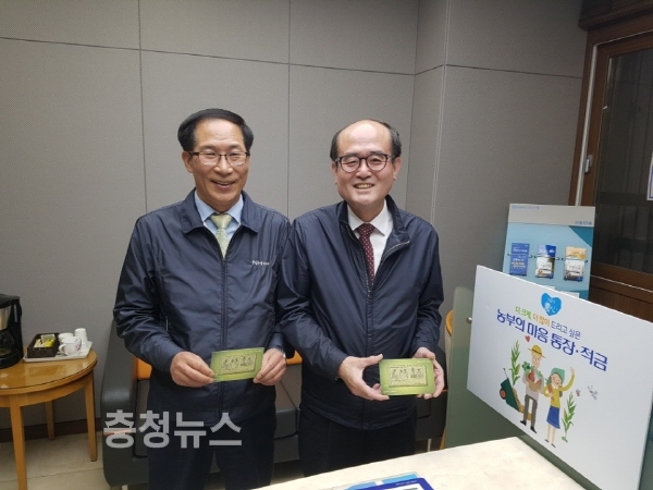 유찬형 농협중앙회 충남지역본부장과 원종찬 농협은행 충남영업본부장도 상품 출시일에 영업점을 방문하여 ‘NH農心-농부의마음 통장·적금’에 가입하고 “농부의 마음 통장·적금은 고객에게 우리 농업과 농산물에 대한 관심을 불러일으키고 간편한 금융거래만으로도 농가에 도움을 줄 수 있는 상품”이라며 “농협은 앞으로도 농가소득 증대 및 농촌복지 개선을 위해 전사적인 노력을 기울일 것”이라고 말했다.