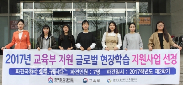 한국영상대학교(총장 유재원)가 교육부와 한국전문대학교육협의회가 주관하는 ‘2017년 전문대학 글로벌 현장학습’에 영상촬영조명과, 광고영상디자인과, 스튜어디스과 등 6개 학과 7명의 학생이 최종 선발됐다고 21일 밝혔다.